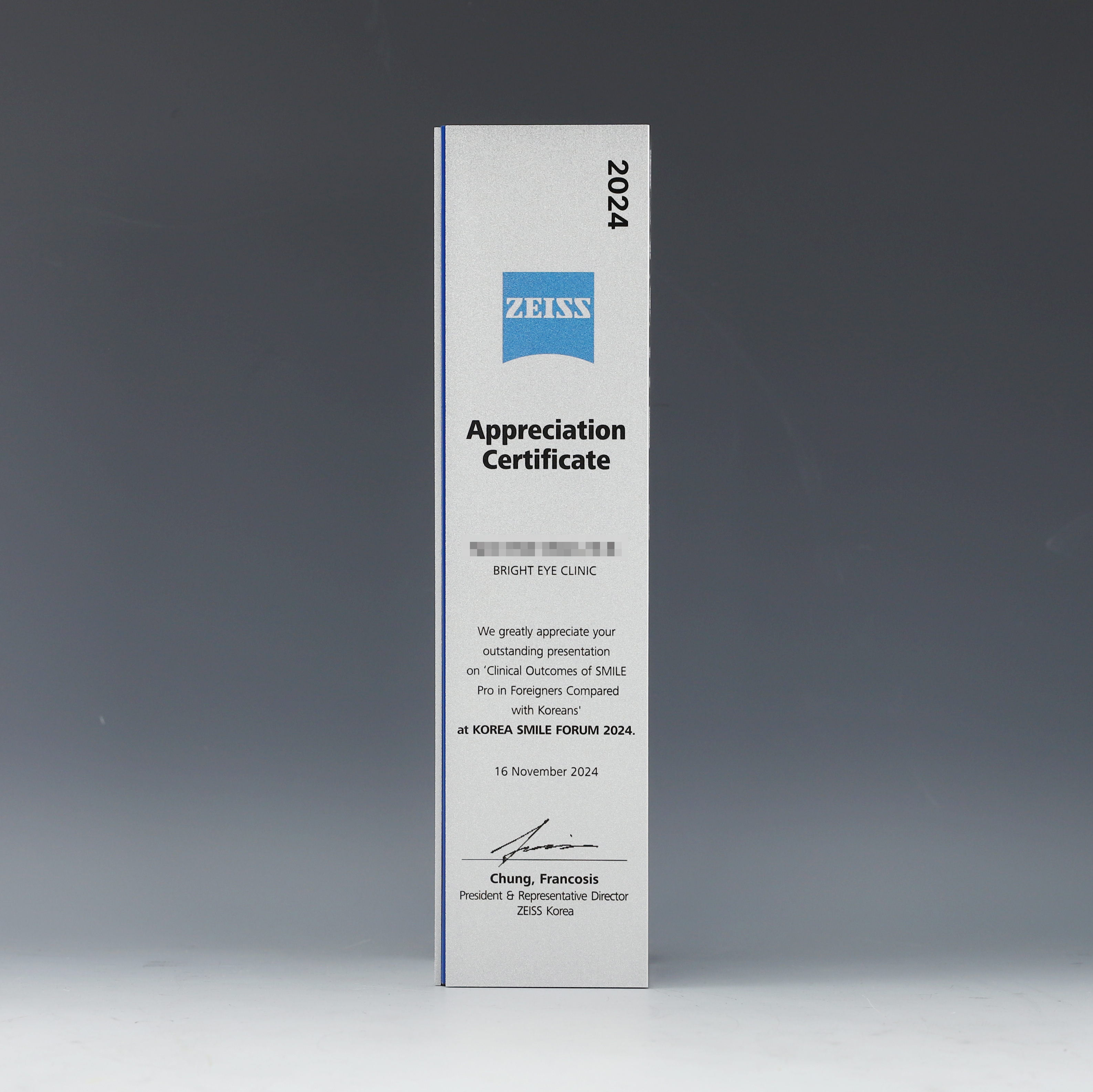자이스 기둥 트로피 제작 제품입니다.
