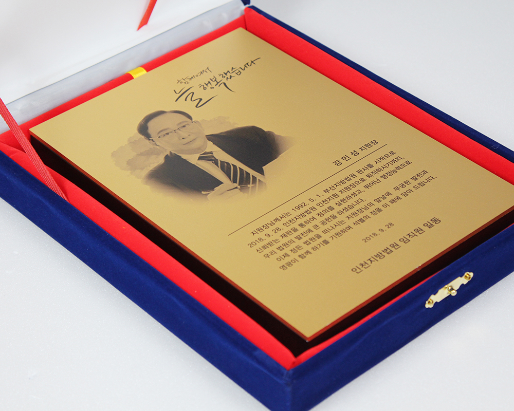 인물화 상패 크리스탈 시계 시상식트로피 블랙 크리스탈 상패 순금 상패