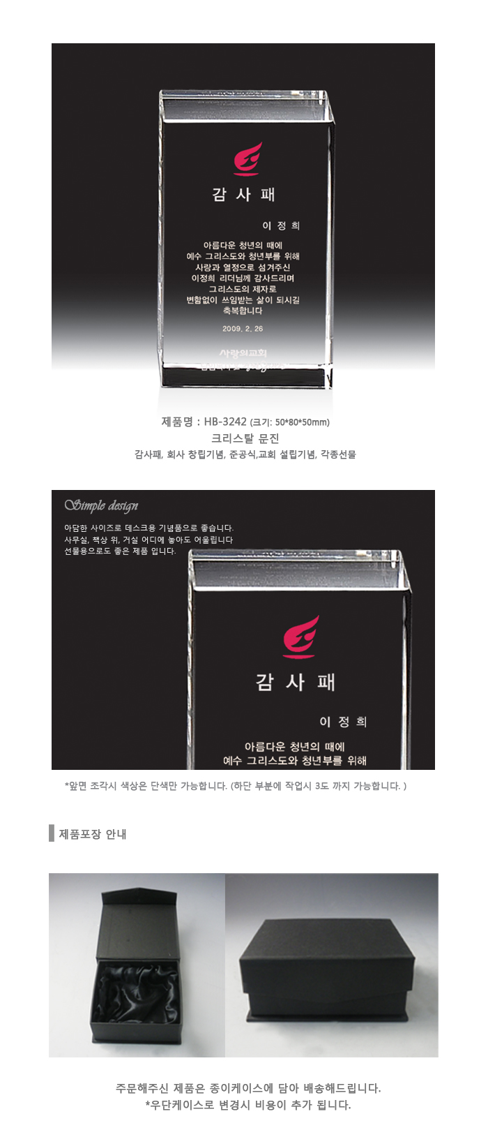 인물화 상패 크리스탈 시계 시상식트로피 블랙 크리스탈 상패 순금 상패