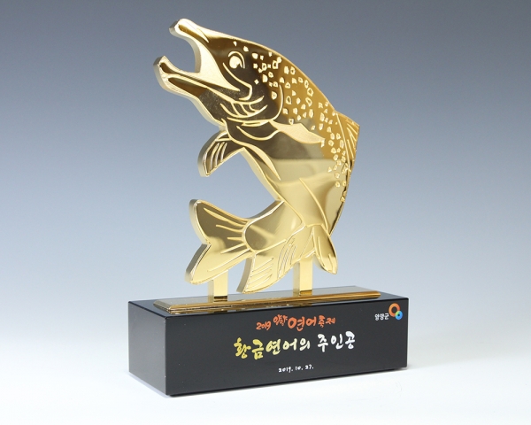 연어축제를 위해서 연어를 형상화 하여 제작한 트로피 입니다