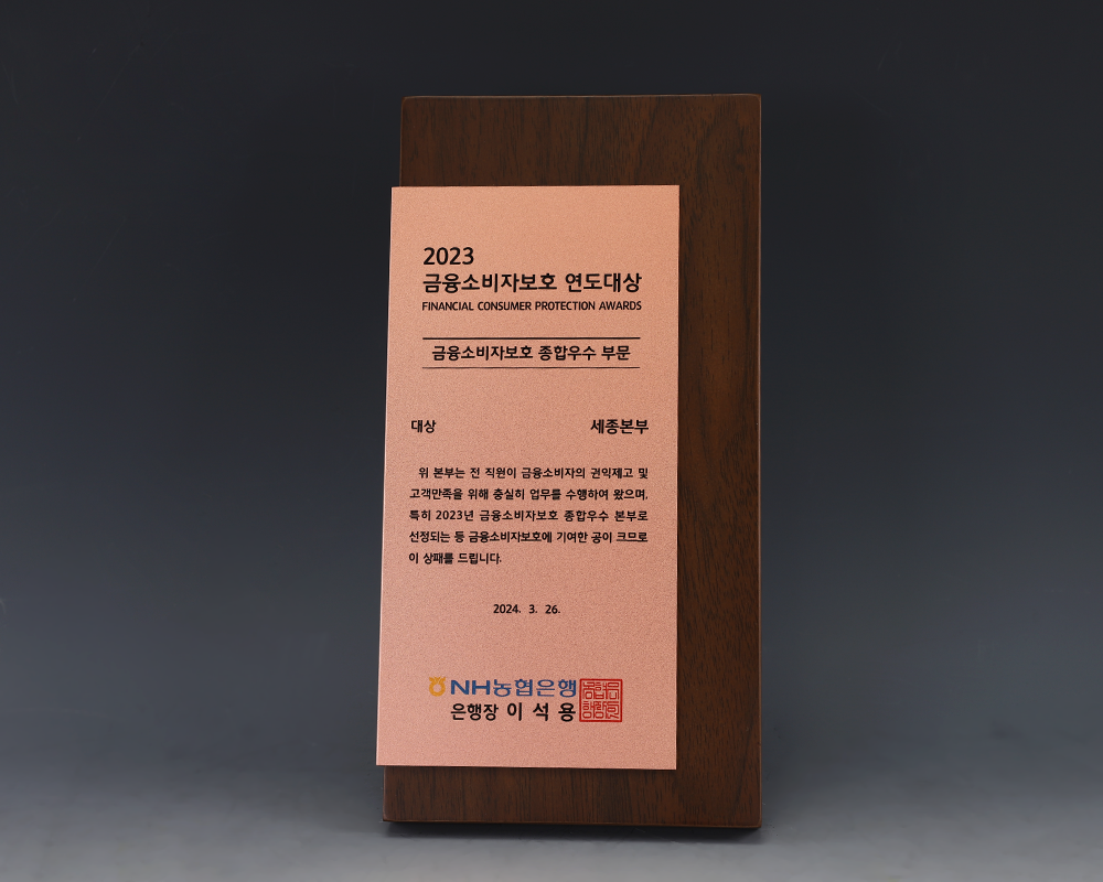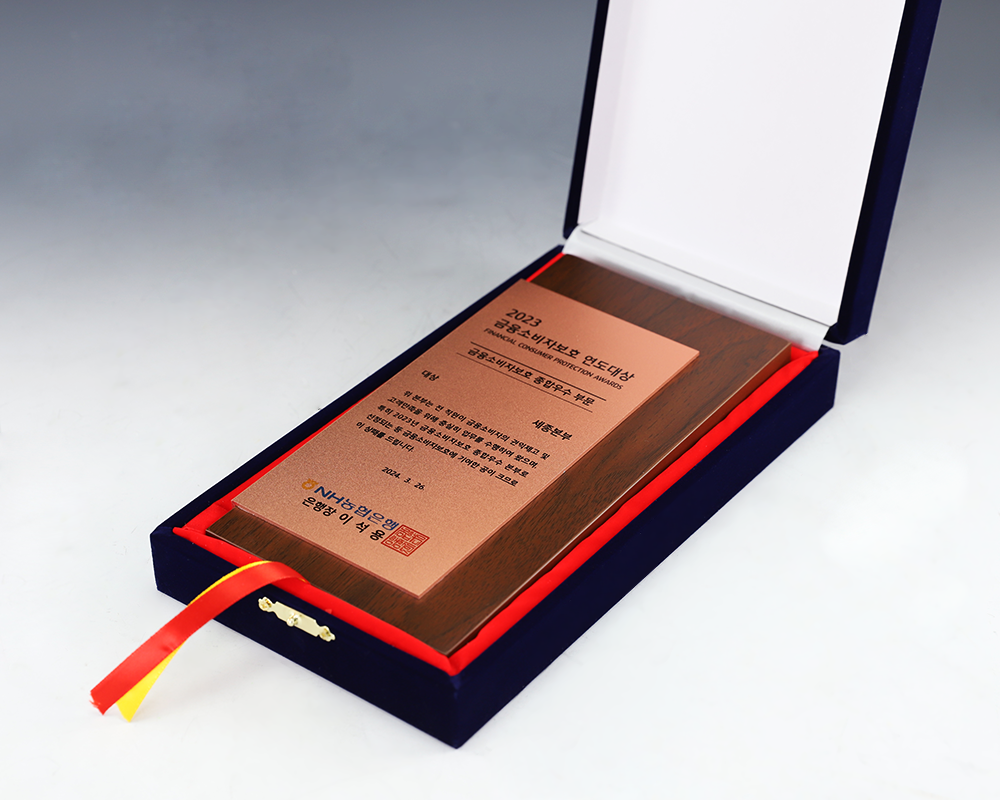 농협은행 금융소비자보호 연도대상 주문 제작 제품입니다.