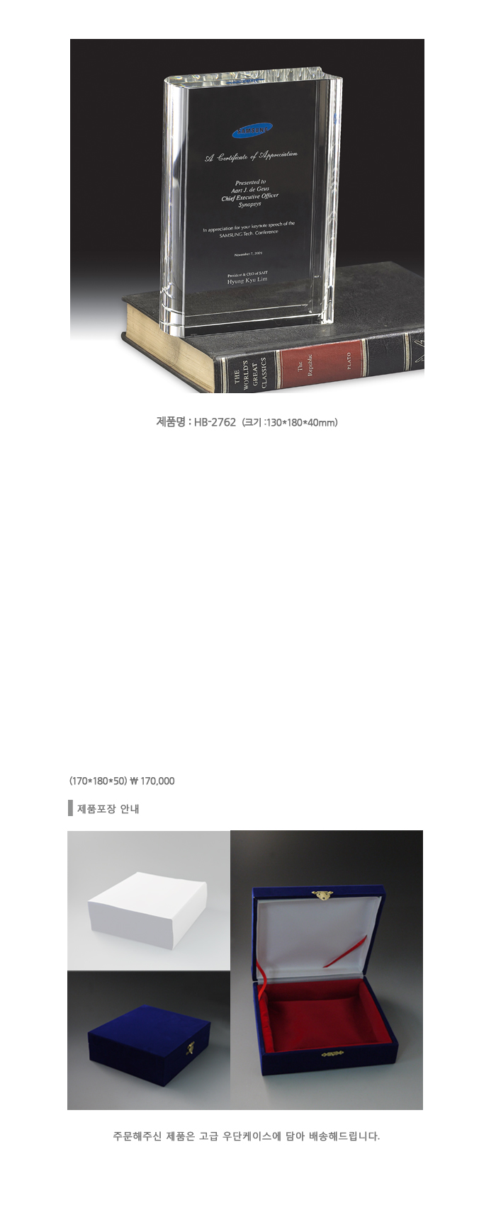 크리스탈 상패 HB-2762