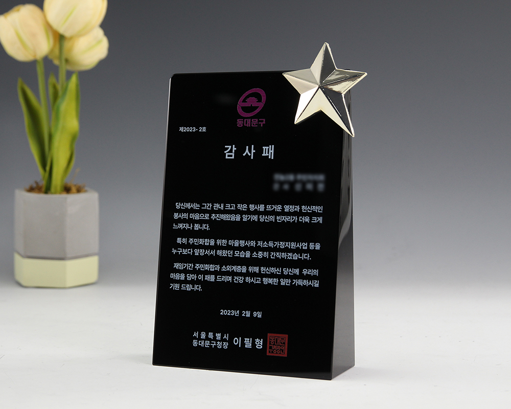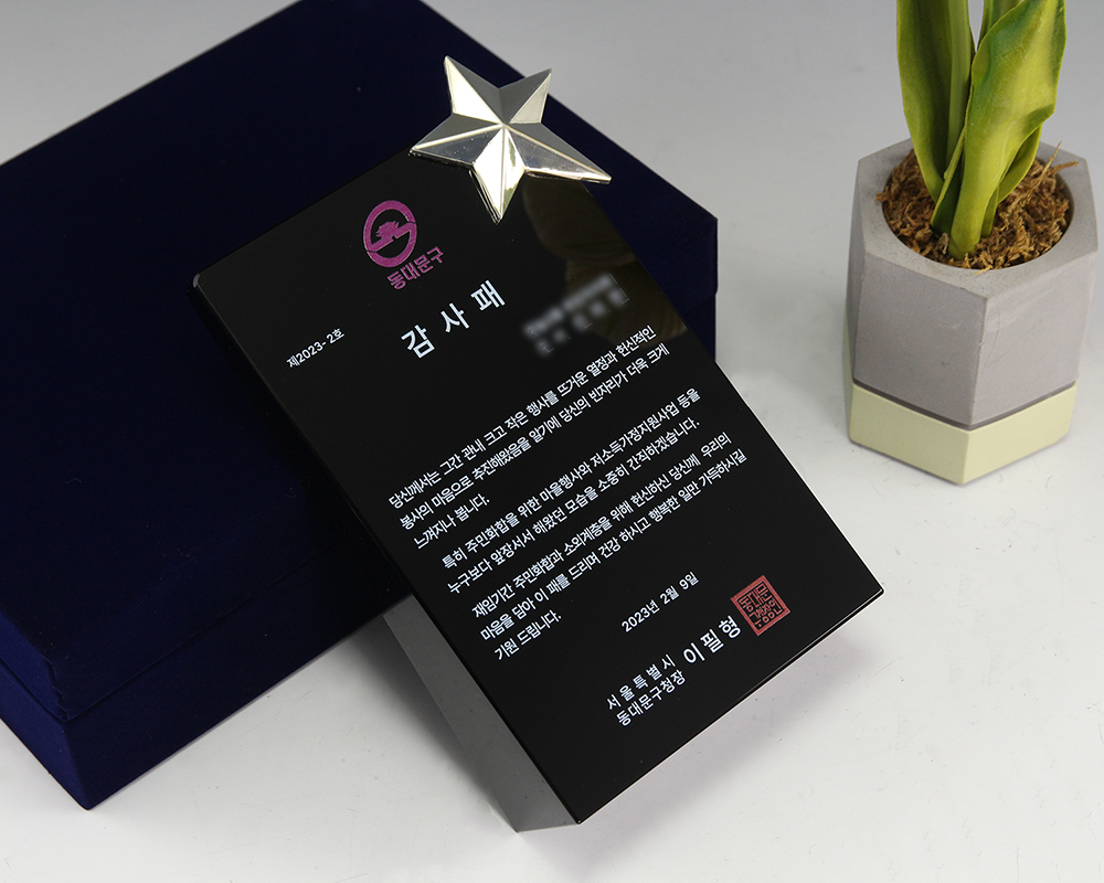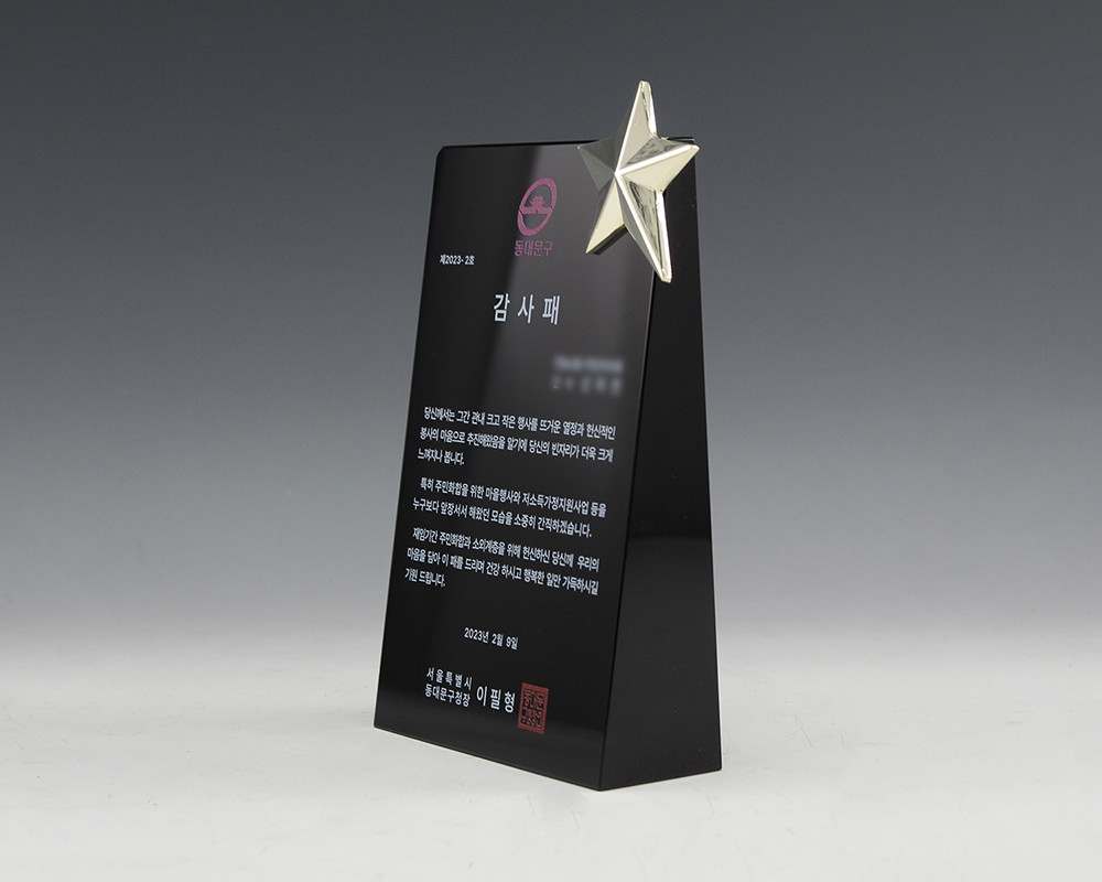 인물화 상패 크리스탈 시계 시상식트로피 블랙 크리스탈 상패 순금 상패
