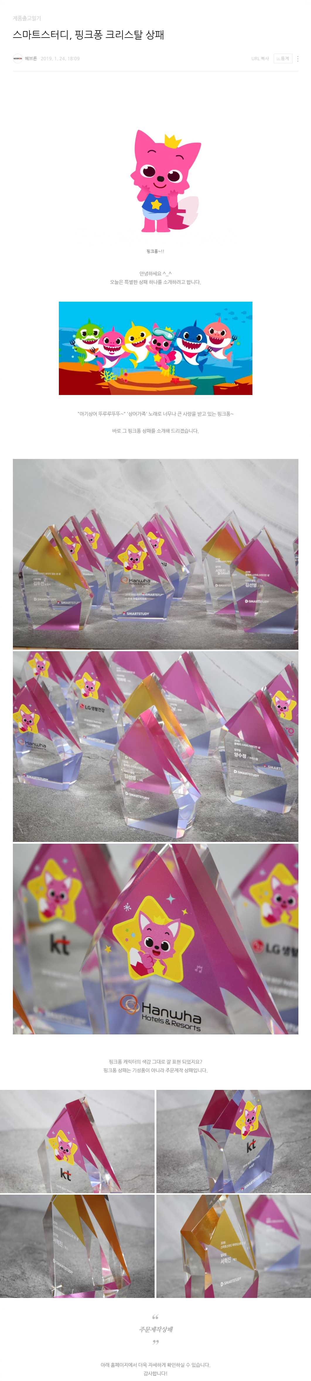 핑크퐁(스마트스터디) 크리스탈 상패