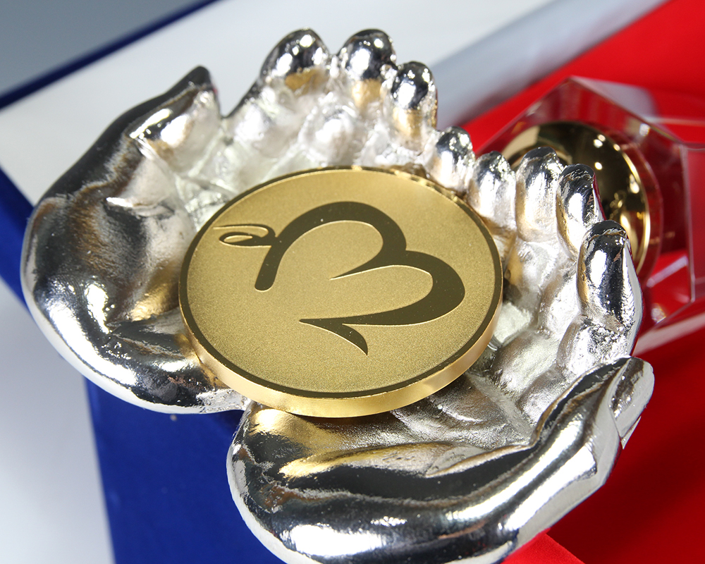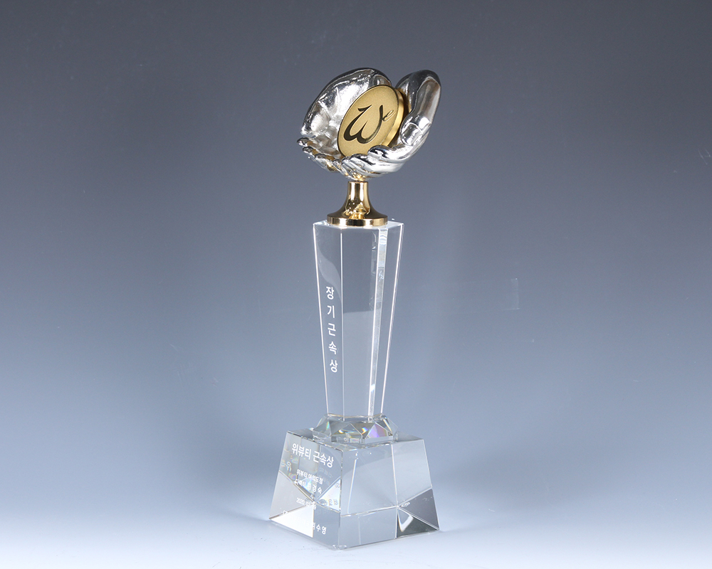 로고와 손바닥의 모습을 형상화하여 제작된 트로피입니다.