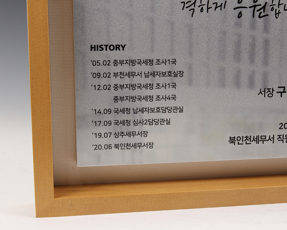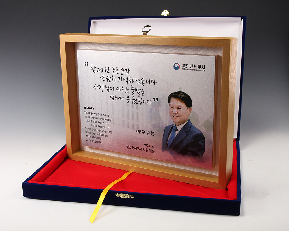 고객의 요청사항에 맞춰 제작된 하나뿐인 제작 상패입니다.